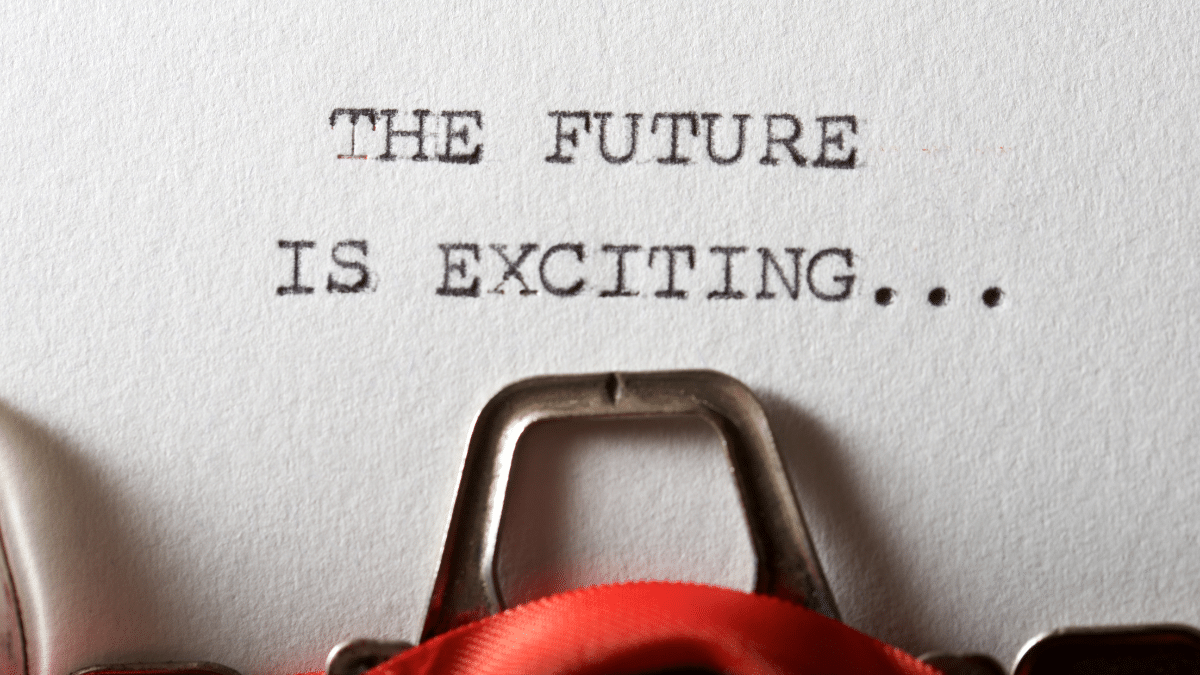 Toekomst van Teamleiderschap enthousiaste tekst op typemachine